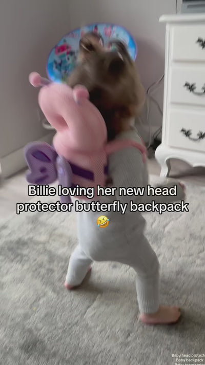 “I can't begin to tell you the hundreds of head concussion that this backpack saved my nephew. He had a big head and was imbalanced with the weight. He would easily just let himself fall backwards and this backpack was there between his head and the floor. I am so grateful that I bought it. He refused to wear head helmets but was receptive to wearing the backpack. The pink butterfly was just fantastic. He started wearing one between 4 months to 1 year old.”